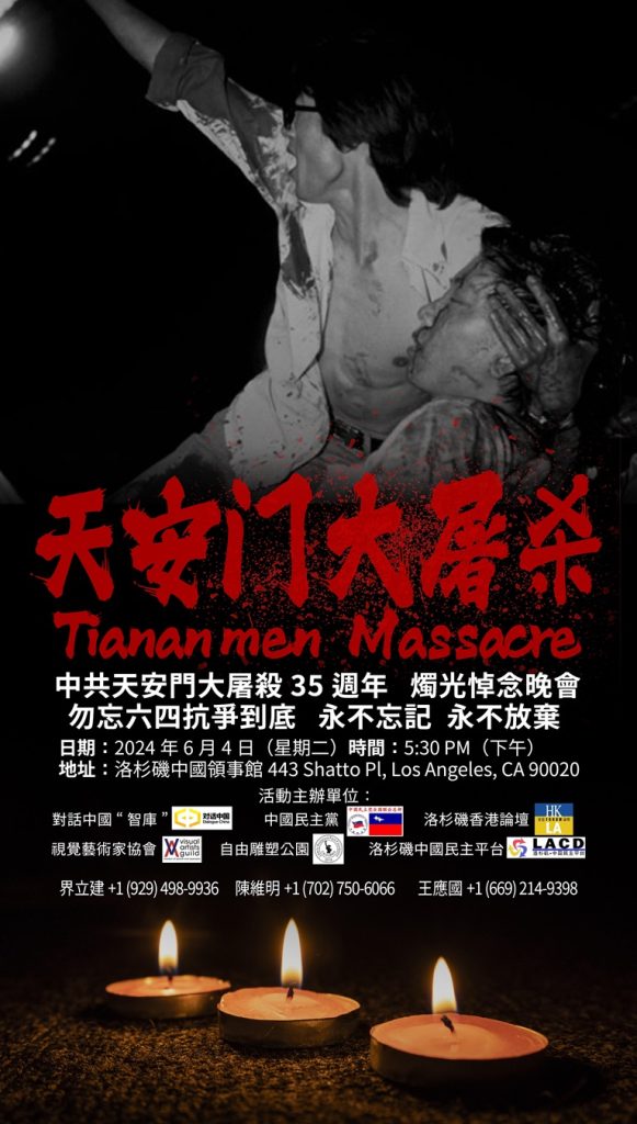 活動:中共天安門大屠殺35週年,燭光悼念晚會,勿忘六四抗爭到底、永不忘記永不放棄