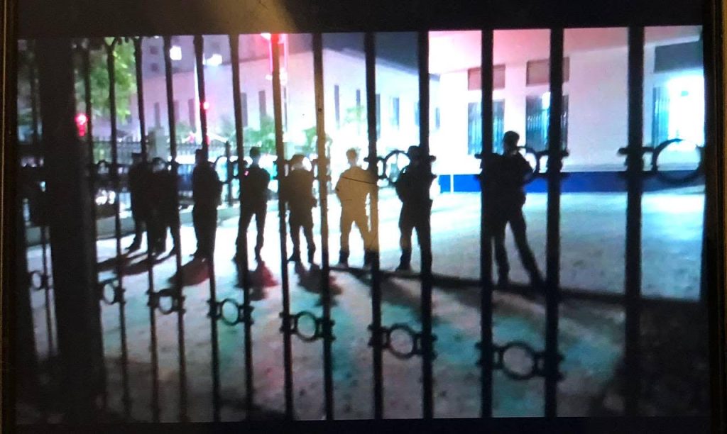 稍憩几日,我忍住疼痛拖着病体到达三千多里的广东急于想看看儿子,然而出乎预料的是广东公检法高层早已下令监狱不让我会见。从狱政科工作人员无奈的眼神、表情及语言中看得出来,监狱方受到了广东高层部分领导的挟制。现盘踞于广东公检法高层的部分领导、省公安厅原厅长李春生的同党们为了掩盖真相而激化舆论,还布置了大量警力甚至特警手持枪械以恐吓我(见下图)。